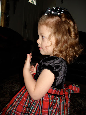 Ella's vocabulary has sky rocketed in the past couple weeks. She has utterly shocked us with the things that she says which makes us usually giggle. It's so fun to be able to have conversations with our daughter and finally understand all the things that she has been trying to get out to us previously. Right now I could describe our daughter as... very outgoing, lovable, and a princess with a hint of tom boy in her. She loves to wear her cotton dresses which for some reason she calls herself a "flower princess" while wearing them. However, most mornings it is a battle getting her ready because she hates to take off her pjs and recently has refused allowing bows to be put in her hair. We hear a lot of "No Mommy, No Daddy, that's not NOT nice." She uses the double negative to emphasize how not nice things are. LOL. It's hard not to laugh because she's so cute with her serious face. Ella has become very musical; she loves to be sung to every night. She calls out "Wakka Key Baby Daddy" before bed; Jonah then sings to her a couple songs; then she says "Wakka Key Mommy" and I travel into the room to sing her to sleep. The "wakka key" comes from "rocka by baby" which we've been singing to her for quite some time; the missed pronunciation seems to have stuck. She loves to play the piano with me during the day while I practice various music for church. She'll sing aloud while plunking on the piano pretending to read the music while she plays. Perhaps a little Mozart in our family? :) We are already so proud.